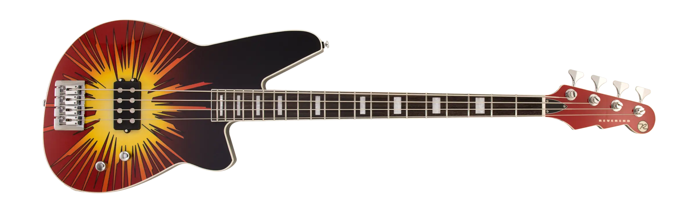 Punk rock legend Greg Norton of UltraBomb and Husker Du joins the Reverend team with an aggressive new bass. Greg chose a no-frills, single-pickup, durable bass that delivers a solid tone for his hard-driving style. Custom graphics from the debut UltraBomb record show you’re coming in hot!