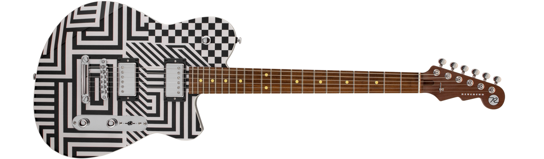The Reverend Jenn Wasner Signature JW-1 combines the dynamic power of the Charger HB with the visual aesthetic of Jenn’s projects (Wye Oak, Flock of Dimes, Dungeonesse). We partnered with the Baltimore textile artist who created Jenn’s stage wear, April Camlin, to create the graphic, called “Optic Interruption.” The visual effect is as dynamic as the sound.